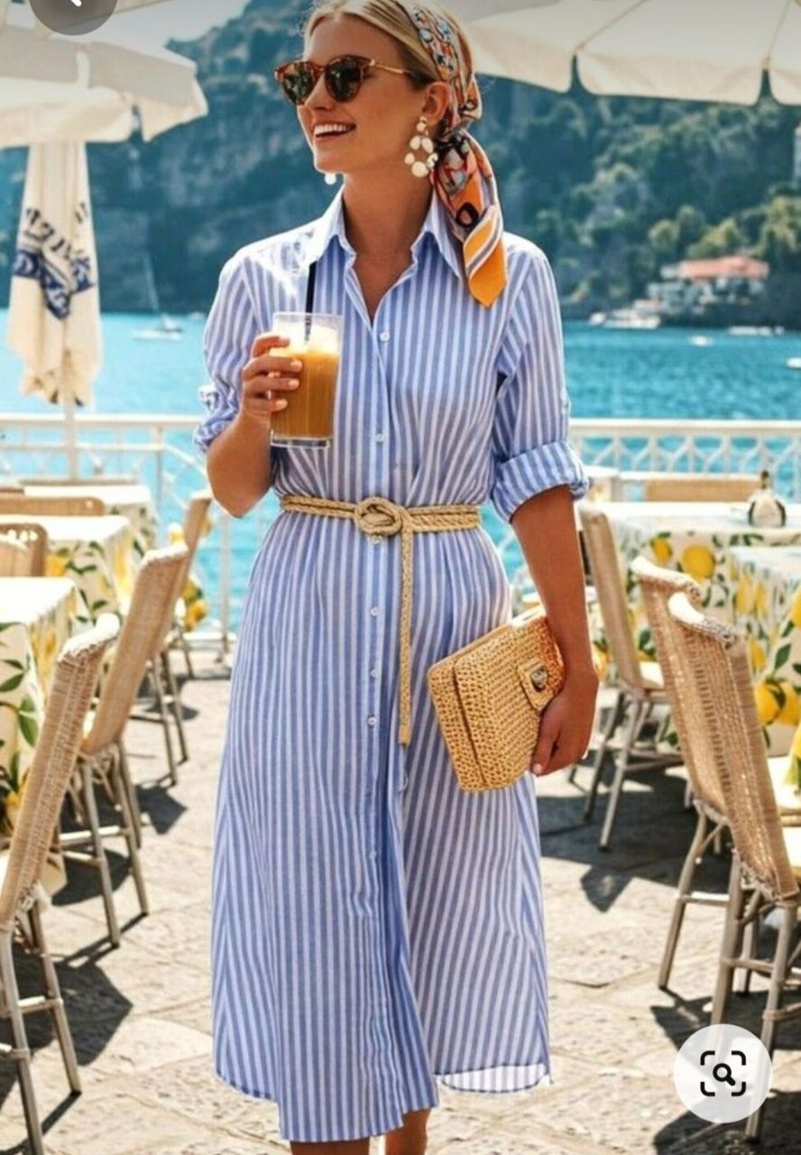 Обновите свой гардероб с нашим стильным платьем-рубашкой, выполненным из высококачественной смесовки в тонкую полоску! Эта легкая и дышащая ткань идеально подходит для жарких дней — она обеспечивает комфорт, не вызывает потливости и приятна для тела. Благодаря стойкости цвета и высокой износостойкости, ваше платье сохранит свежий и аккуратный вид на долгое время. Практичные глубокие карманы в боковых швах добавляют удобства и функциональности.